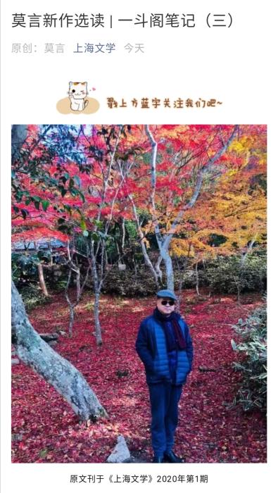 2019年,《上海文學(xué)》曾發(fā)表莫言的《一斗閣筆記》與《一斗閣筆記(二)》。