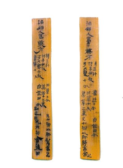 1972年11月,武威城郊柏樹鄉(xiāng)的農(nóng)民在旱攤坡興修水利時發(fā)現(xiàn)了一座古墓,經(jīng)考證這是座東漢早期的墓葬,墓主人是位老年醫(yī)者,這位懸壺濟世一生的老中醫(yī)真是位敬業(yè)的醫(yī)者,在他的隨葬品中人們發(fā)現(xiàn)了一批珍貴的醫(yī)藥簡牘。這些醫(yī)藥簡牘共計92枚,其中木簡78枚,木牘14枚。簡書內(nèi)容豐富,抄錄的都是當時的驗方,保存完整和比較完整的醫(yī)藥方有30多個,涉及內(nèi)科、外科、婦科、五官科、針灸科等,處方中所列藥物近百味。有些藥方還詳細記載了病名、病狀、藥物、劑量、制藥方法、服藥時間、用藥方式、針灸穴位以及注意事項等。這些簡牘應是這位老中醫(yī)多年行醫(yī)的經(jīng)驗和有效方劑的真實記錄。從簡文的整個內(nèi)容來看,這批“醫(yī)藥簡”充分體現(xiàn)了中國傳統(tǒng)醫(yī)學“辨證施治”的原則,并將這一原則具體運用到了臨床上;在藥物學方面,簡文中所載藥物較《神農(nóng)本草經(jīng)》有所發(fā)展,而且這些藥物的性能在當時已被人們掌握。