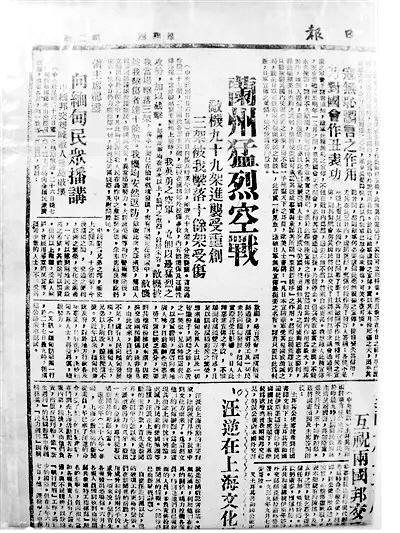 當(dāng)年報紙報道的蘭州空戰(zhàn)。