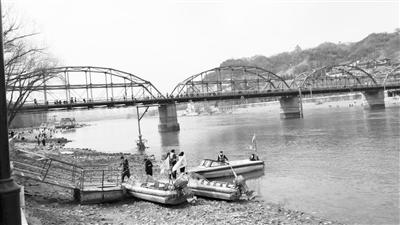 如果時光回到抗戰(zhàn)時期,也是這個地方,遠(yuǎn)處人們在取水,近處幾個筏工在忙碌著。