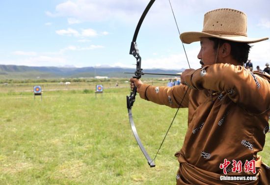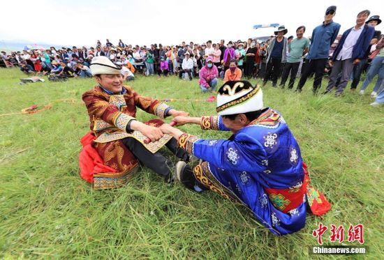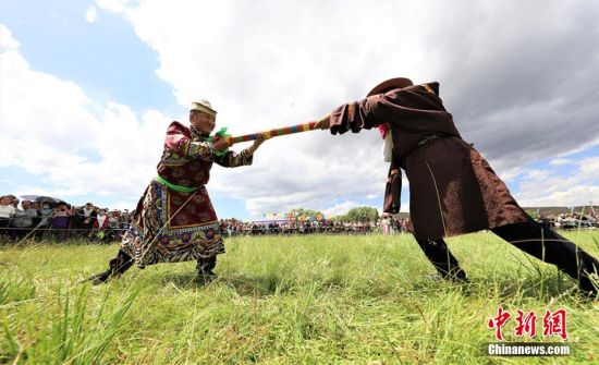 8月8日,甘肅張掖市肅南裕固族自治縣皇城鎮(zhèn)第十六屆民族文化旅游藝術(shù)節(jié)暨傳統(tǒng)體育運(yùn)動(dòng)會(huì)拉開(kāi)帷幕。賽馬、押加、拔棍、頂杠子、射箭、背垛子等一項(xiàng)項(xiàng)少數(shù)民族傳統(tǒng)體育運(yùn)動(dòng)項(xiàng)目,吸引上萬(wàn)觀眾觀看。近年來(lái),肅南縣將體育項(xiàng)目與歷史、民族、文化、旅游有機(jī)結(jié)合,打造民族體育節(jié)慶品牌和運(yùn)動(dòng)會(huì),使民族傳統(tǒng)體育發(fā)展增加了新的內(nèi)涵,逐步形成了全民健身品牌,影響力不斷擴(kuò)大。圖為參賽選手進(jìn)行拔棍項(xiàng)目比賽。 趙琳 攝