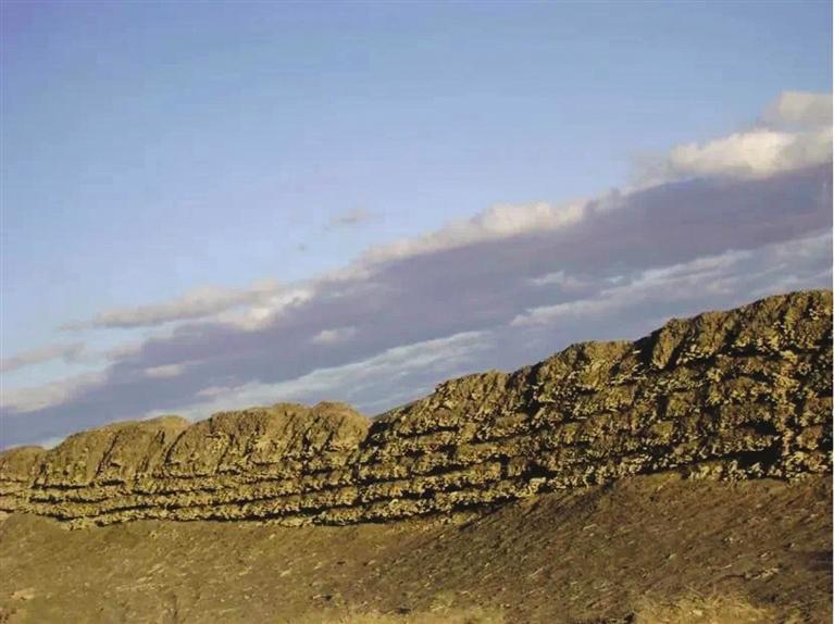 花海漢長(zhǎng)城遺址位于玉門市花海鎮(zhèn)西泉村頭墩西側(cè)至二墩東側(cè),西起三墩,東至花海頭墩,全長(zhǎng)約3.5公里。長(zhǎng)城基寬約2.4米,用沙石、紅柳分層夯筑,最高部分保存有紅柳7層,是河西走廊漢代長(zhǎng)城遺址中保存較完好的地段之一。(蘭州日?qǐng)?bào)社全媒體記者 王萬盈 高慧霞 文/圖)