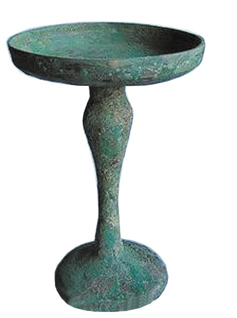 中國(guó)古代的照明工具,除掉最原始的火把,最早的是油燈而不是蠟燭,有關(guān)蠟燭的記載是漢代才有的。既然要用油燈,古人用什么器皿來(lái)盛放燈油和燈芯呢?人們找來(lái)找去,一種名叫“豆”的器皿脫穎而出。“豆”本為上古時(shí)代的一種盛食器,其上為圓盞盤,中間為或長(zhǎng)或短的直柄,最下為喇叭或圓足形底座。簡(jiǎn)單地說(shuō),“豆”的形狀就像高腳盤,一般用陶制,也有青銅或木制的,青銅制的用作祭祀禮器。“豆”的造型,完全符合人們對(duì)燈具的基本需求——既有能裝油和燈芯的淺淺的容器,又有方便移動(dòng)的把手。于是,人們就在“豆”的基礎(chǔ)上稍加修改,用陶土燒制出了最初的高腳燈具。