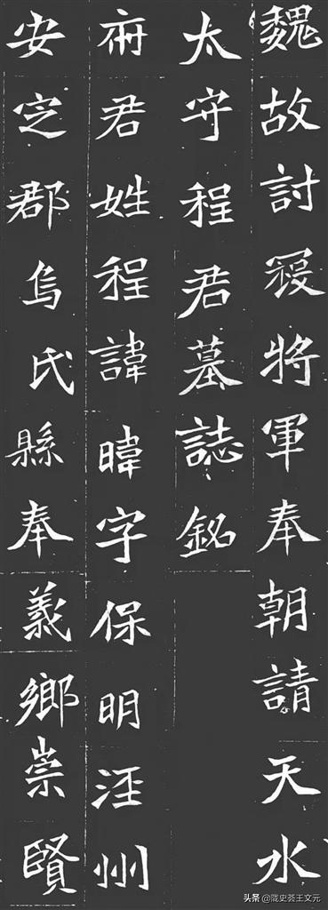 仔細(xì)一讀,發(fā)現(xiàn)了不尋常。第一行內(nèi)容就吸引了我的注意力:“魏故討寇將軍奉朝請(qǐng)?zhí)焖爻叹怪俱?rdquo;,原來(lái)是位天水太守,這可少見(jiàn),能補(bǔ)充史料的不足。繼續(xù)下看,后面兩行,更加有意思了:府君姓程,諱暐,字保明,涇州安定郡烏氏縣奉義鄉(xiāng)崇賢里人也。這人是甘肅人?。?/p>