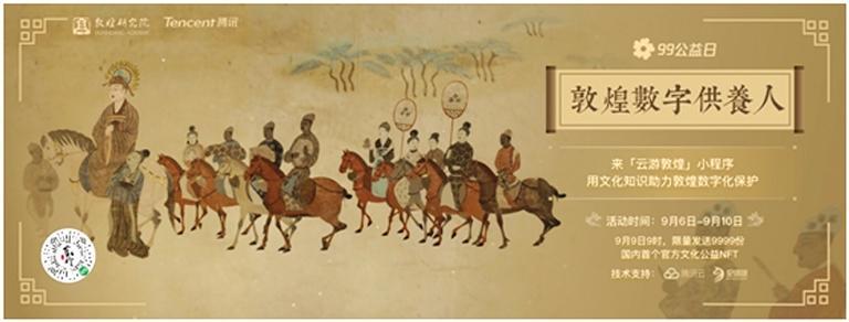 除了創(chuàng)意互動(dòng)帶來(lái)的新奇體驗(yàn),敦煌研究院與騰訊在“99公益日”還將發(fā)布文博行業(yè)首個(gè)公益NFT(Non-Fungible Token,非同質(zhì)化通證)藏品。9月9日9時(shí)開(kāi)始,用戶在“云游敦煌”小程序參與文化答題即有機(jī)會(huì)獲得這款限量數(shù)字藏品。這份NFT藏品生動(dòng)呈現(xiàn)了《張議潮統(tǒng)軍出行圖》與《宋國(guó)河內(nèi)郡夫人宋氏出行圖》壁畫(huà)的細(xì)節(jié),并首次讓用戶在線上觀看到敦煌莫高窟第156窟的全景。