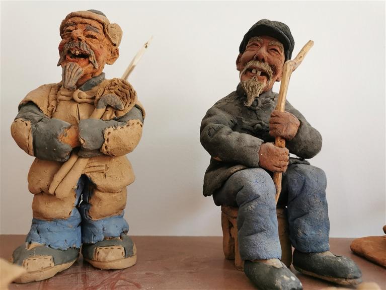 記者環(huán)顧四周,只見(jiàn)滿(mǎn)臉堆笑的“老頭老太”、活潑可愛(ài)的“牧童”、陽(yáng)光清純的“少先隊(duì)員”等泥塑作品形象鮮活生動(dòng),依次有序地?cái)[放在展架上。