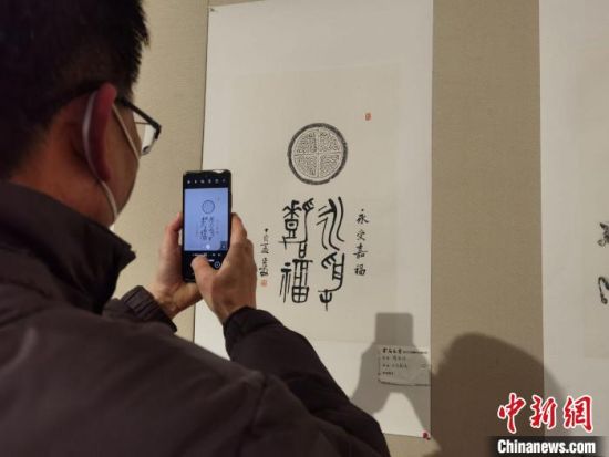 圖為觀展者用手機(jī)記錄傳拓技藝?!〈蘖铡z