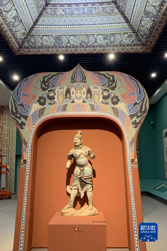 敦煌石窟藝術展展出的彩塑臨摹品。新華社記者 張玉潔 攝