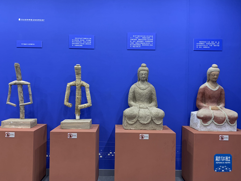 這是敦煌石窟藝術展展示的彩塑制作步驟。新華社記者 張玉潔 攝