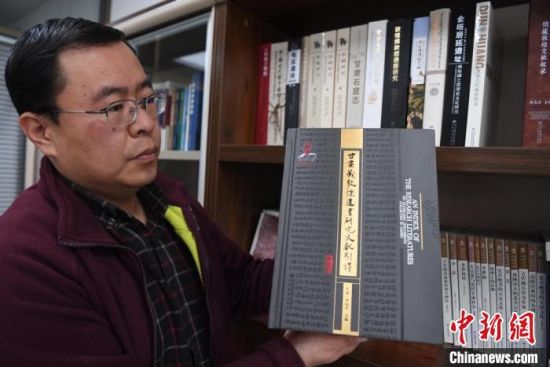 12月31日,甘肅教育出版社副社長白鑫展示近期出版發(fā)行的《甘肅藏敦煌遺書研究文獻(xiàn)引得》?!钇G敏 攝
