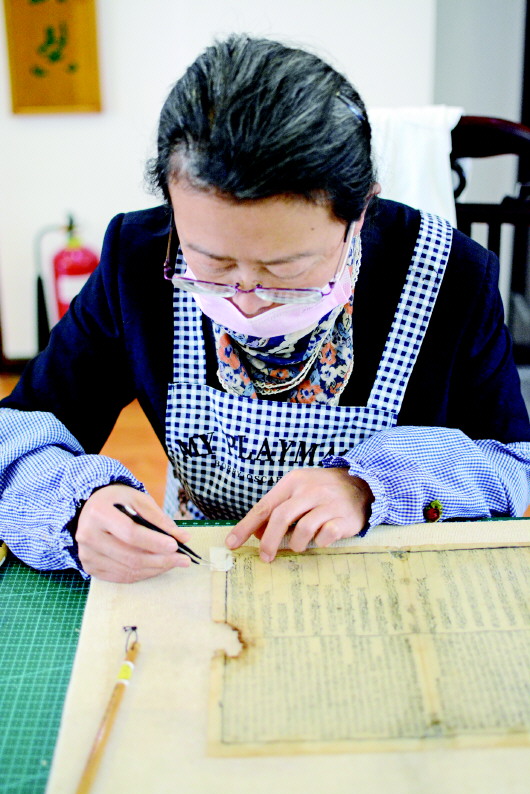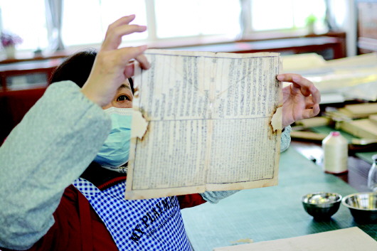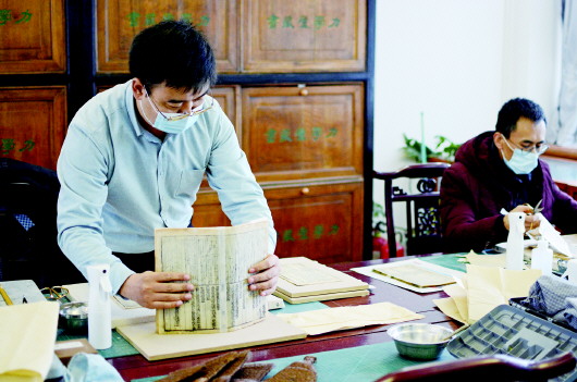 1月5日,記者來到市圖書館古籍部,工作人員正在對破損古籍進(jìn)行全手工修復(fù)。