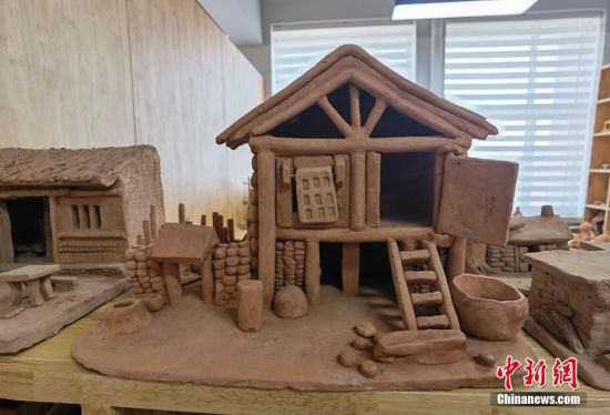 圖為學(xué)生用泥巴制作的房屋。 劉玉桃 攝