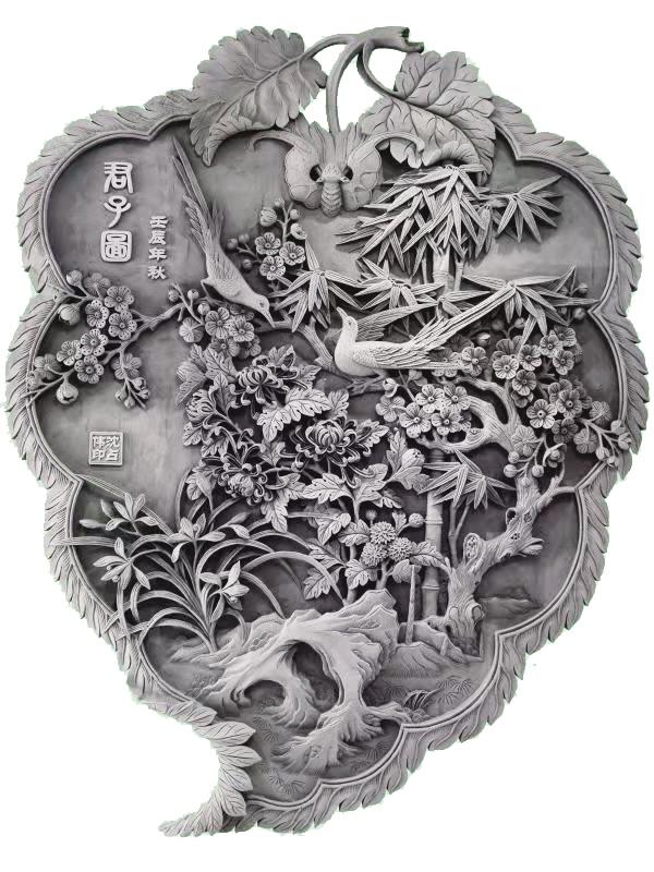 端詳沈占偉的作品,有栩栩如生的花鳥,大氣磅礴的山川,活靈活現(xiàn)的人物,能想到的體裁應(yīng)有盡有??梢哉f遠(yuǎn)看端莊大氣,近看細(xì)節(jié)精湛,尤其是對(duì)動(dòng)植物的刻畫,仿佛通過他的刻刀賦予了生命,在原本冰冷的磚塊上呼之欲出,生機(jī)勃勃。難能可貴的是,他并不會(huì)限制自己的創(chuàng)作體裁,每一幅作品都是匠心之作,都傾盡了他的心血。
