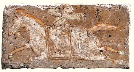 李廣射虎彩繪畫像磚/西晉 敦煌市博物館藏(本版圖片由甘肅省博物館提供)
