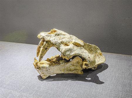 劍齒虎頭骨化石/晚中新世-更新世末 白銀市博物館藏