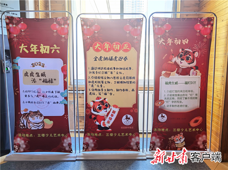 “后續(xù),還有大年初三的‘靈虎送福——虎紙漿畫(huà)DIY ’活動(dòng)、大年初四的‘?;⑸?mdash;—福燈DIY ’活動(dòng)、大年初五的‘金虎納福虎迎春’活動(dòng)、大年初六的‘虎虎生威添‘福祿’活動(dòng)’。”省博物館社會(huì)教育部主任盧冬介紹,每場(chǎng)活動(dòng)面向約30名小朋友開(kāi)展,經(jīng)過(guò)前期策劃準(zhǔn)備,除了省博物館社教部的10余名工作人員,給孩子們普及有關(guān)虎和北京冬奧會(huì)的知識(shí),還有來(lái)自西北師范大學(xué)、蘭州二十七中等校的學(xué)生志愿者,指導(dǎo)輔助孩子們玩游戲、做手工。
