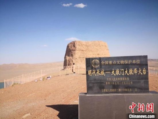圖為位于甘肅酒泉市金塔縣境內(nèi)的全國重點文物保護(hù)單位——大墩門大墩明長城烽燧。(資料圖) 馮志軍 攝