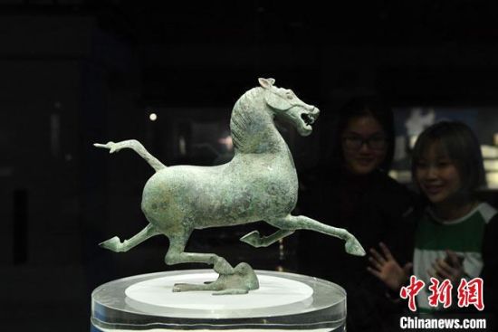 2020年6月17日,參觀者欣賞甘肅省博物館展出的“銅奔馬”真品。(資料圖) 楊艷敏 攝