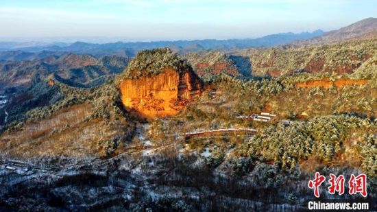 麥積山風景區(qū)是中國南北方沉積地層在地表上層的分界線,又是黃河長江兩大流域的分水嶺,雪后景色地貌獨特。周文濤 攝