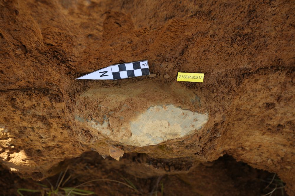 遺址B區(qū)后緣剖面采集薄刃斧