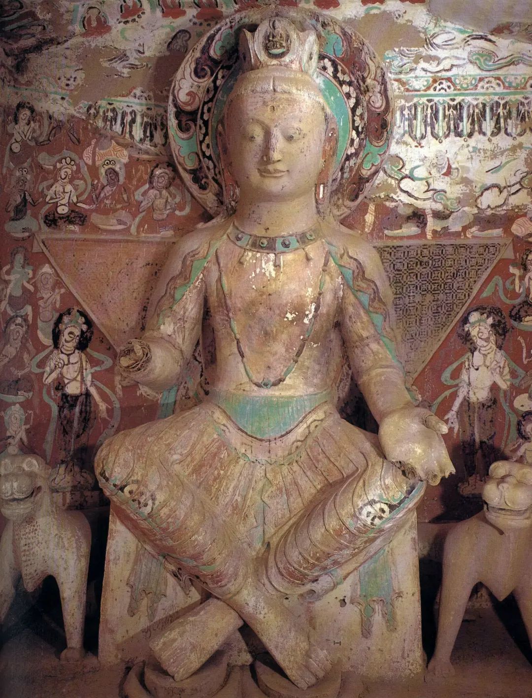 莫高窟第275窟西壁交腳菩薩旁邊的獅子 | 圖源《中國石窟·敦煌莫高窟》