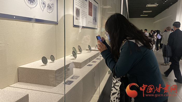 中國(guó)甘肅網(wǎng)5月9日訊(本網(wǎng)記者 沈文剛)5月9日,由蘭州市文旅局和平?jīng)鍪形穆镁种鬓k,蘭州市博物館、平?jīng)鍪胁┪镳^、涇川縣博物館、靈臺(tái)縣博物館、崇信縣博物館、華亭市博物館、莊浪縣博物館、靜寧縣博物館等八家市縣博物館聯(lián)合舉辦的《光耀金城 鏡鑒千秋——蘭州平?jīng)鲳^藏精品銅鏡聯(lián)展》開展。
