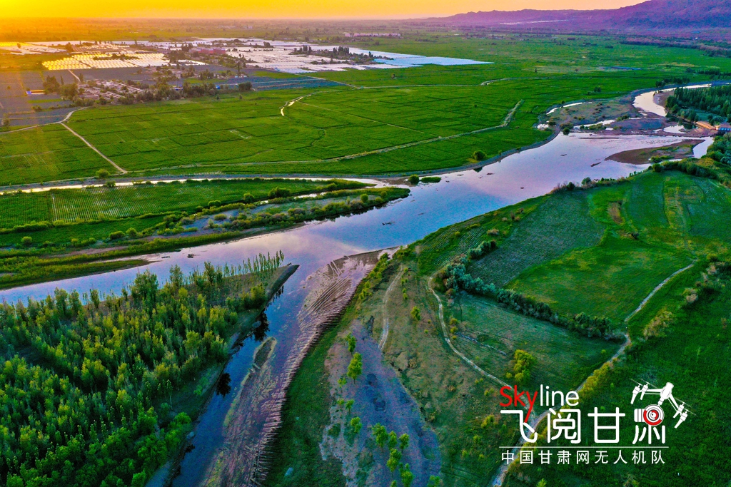 6月15日,位于張掖市甘州區(qū)靖安鄉(xiāng)、烏江鎮(zhèn)境內(nèi)的黑河兩岸,在夕陽的映照下綠意盎然,盡顯勃勃生機(jī),構(gòu)成了一幅綠色美景畫卷。