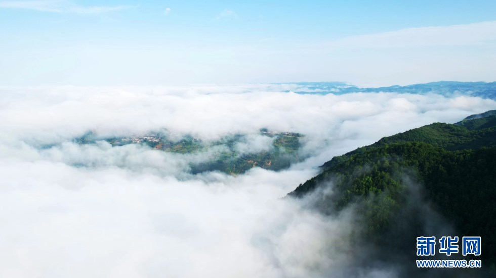 6月27日清晨,“軒轅故里”甘肅省天水市清水縣山門鎮(zhèn)出現(xiàn)壯美云海勝景,山巒之間云霧繚繞,潔白流云與峰巒疊嶂交相輝映,恰似一幅水墨山水畫卷,宛若人間仙境。新華網發(fā)(周文濤 攝)