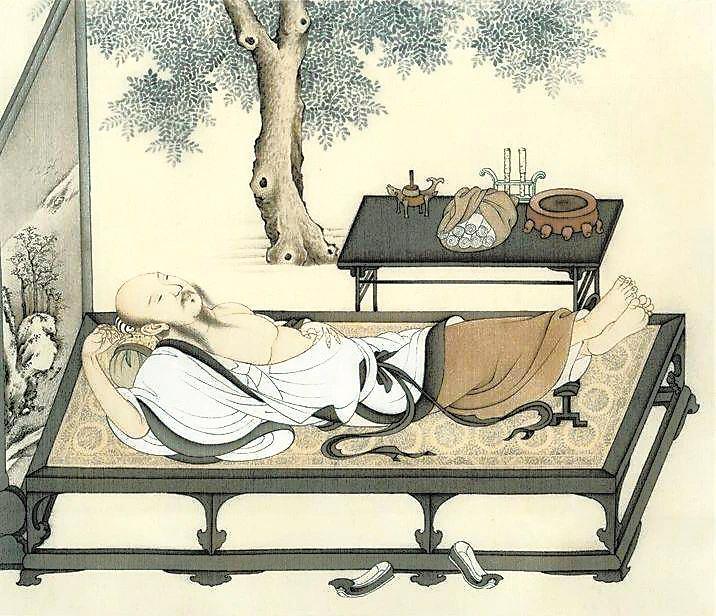 唐代的虢國(guó)夫人的“夜明枕”更為稀奇。五代王仁裕在《開元天寶遺事》中有記載:“夜明枕”,其實(shí)是一種玉石枕頭:“虢國(guó)夫人有夜明枕,設(shè)于堂中,光照一室,不假燈燭。”此外,“石膏枕”也是古人的消暑佳物,除了降溫納涼,還有解暑安神的保健功能。唐代詩(shī)人薛逢寫《石膏枕》贊頌這種神器:“表里通明不假雕,冷于春雪白于瑤。朝來(lái)送在涼床上,只怕風(fēng)吹日炙銷。”