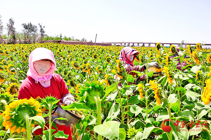 向日葵的種植不僅增添了別樣風(fēng)景,更為農(nóng)戶增加了致富新渠道。千畝向日葵基地不僅讓周邊農(nóng)戶有了土地租金收益,也為周邊群眾就近務(wù)工提供了就業(yè)崗位,在用工高峰期每天用工量可達(dá)到100人次以上,務(wù)工人員月均收入超過(guò)4000元。