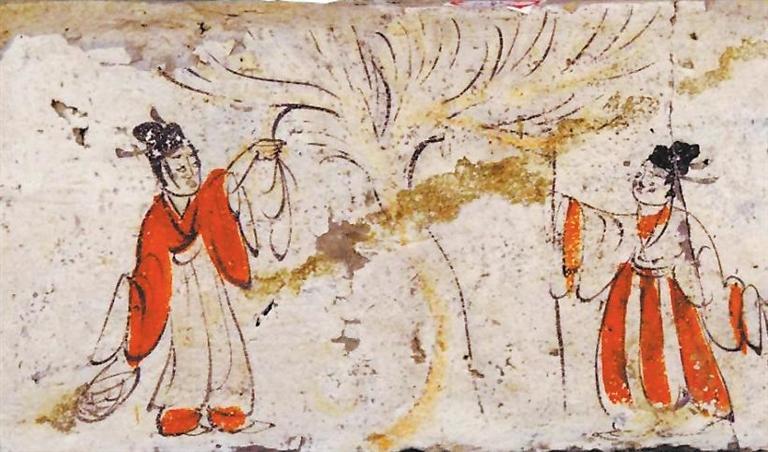 采桑圖 出自嘉峪關(guān)魏晉墓磚畫(huà)