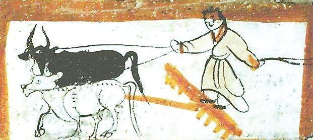 二牛抬杠圖 出自嘉峪關(guān)魏晉墓磚畫(huà)