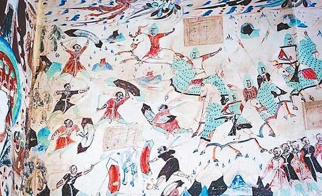 有些武器、軍需品的制作,技術(shù)含量很高?!妒鶉?guó)春秋·西涼錄》記載:建初二年(公元406年),西涼主李暠“造珠碧刀二口,銘其背曰‘百勝’,隸書(shū)。”珠碧,意為珠寶。這是在刀柄上鑲嵌珠寶,在刀背上用隸體鏤刻“百勝”二字的兩把刀,寓意百戰(zhàn)百勝。雖然記載未講刀的鋒利程度,但僅從其裝飾來(lái)看,殊非一般技術(shù)所能勝任。敦煌莫高窟第285窟南壁西魏壁畫(huà)《五百?gòu)?qiáng)盜成佛因緣》中,有戟式雙刃陌刀、長(zhǎng)矛、環(huán)首刀、弓箭及盾的圖像,應(yīng)當(dāng)是現(xiàn)實(shí)社會(huì)所用武器的形象反映,有很高的技術(shù)研究?jī)r(jià)值。