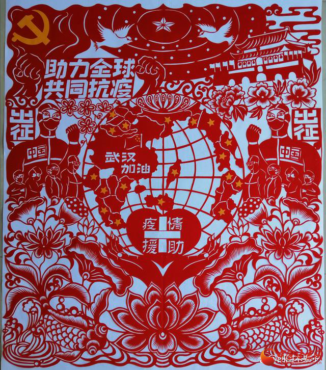 2020年10月中華文化促進(jìn)會(huì)剪紙藝術(shù)委員會(huì)協(xié)同杭州市文化廣電旅游局,杭州市文化館共同舉辦“愛心同鑄,共創(chuàng)末來”全國抗疫情剪紙精品展中,剪紙作品《助力全球,共同抗疫》入選并獲銀獎(jiǎng)。