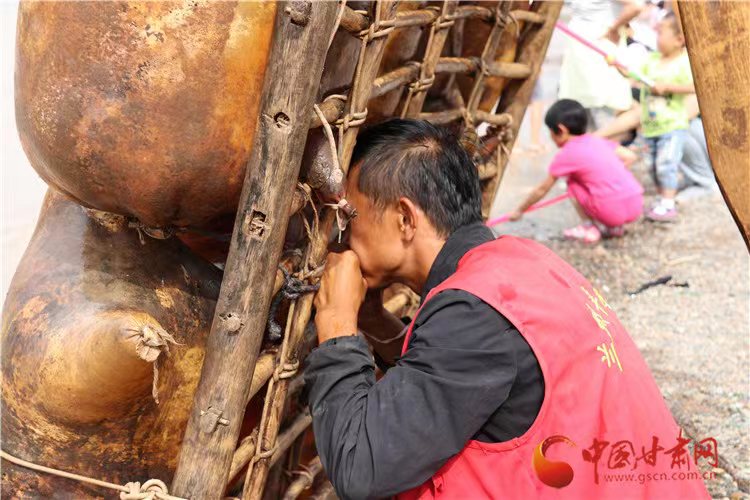 “九曲黃河十八彎,筏子起身闖河關(guān)。”羊皮筏子,舊稱“革船”,是黃河特有的風(fēng)景和古老的運(yùn)輸工具。蘭州羊皮筏子距今已有300多年歷史,作為河道上的短途運(yùn)輸工具,除了擺運(yùn)渡河商旅和兩岸百姓外,還用于商貿(mào)販運(yùn)。