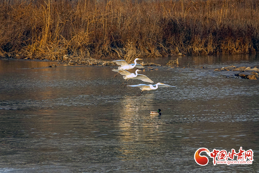 冬日暖陽(yáng)下,平?jīng)鍪谐缧趴h汭水河畔,波光與白鷺互為輝映,勾勒出一幅人與自然和諧相處的生態(tài)畫卷。