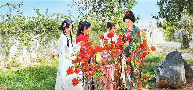 中國(guó)甘肅網(wǎng)4月10日訊 據(jù)蘭州晨報(bào)報(bào)道(奔流新聞·蘭州晨報(bào)記者王蘭芳)“百花錦繡,龍城花朝。”4月9日下午,由天水市玉泉觀大景區(qū)服務(wù)中心、天水市博物館、甘肅公航旅天水名城公司主辦的天水市第二屆漢服“花朝節(jié)”盛大啟幕。來(lái)自天水市的數(shù)百名漢服愛(ài)好者身著各色漢服,或云鬢斜簪輕拂團(tuán)扇,或衣帶飄飄款款而來(lái)。那一刻,煙火人間與國(guó)潮美學(xué)完美融合,“同袍”們盛裝打扮,共同歡慶“花朝節(jié)”。