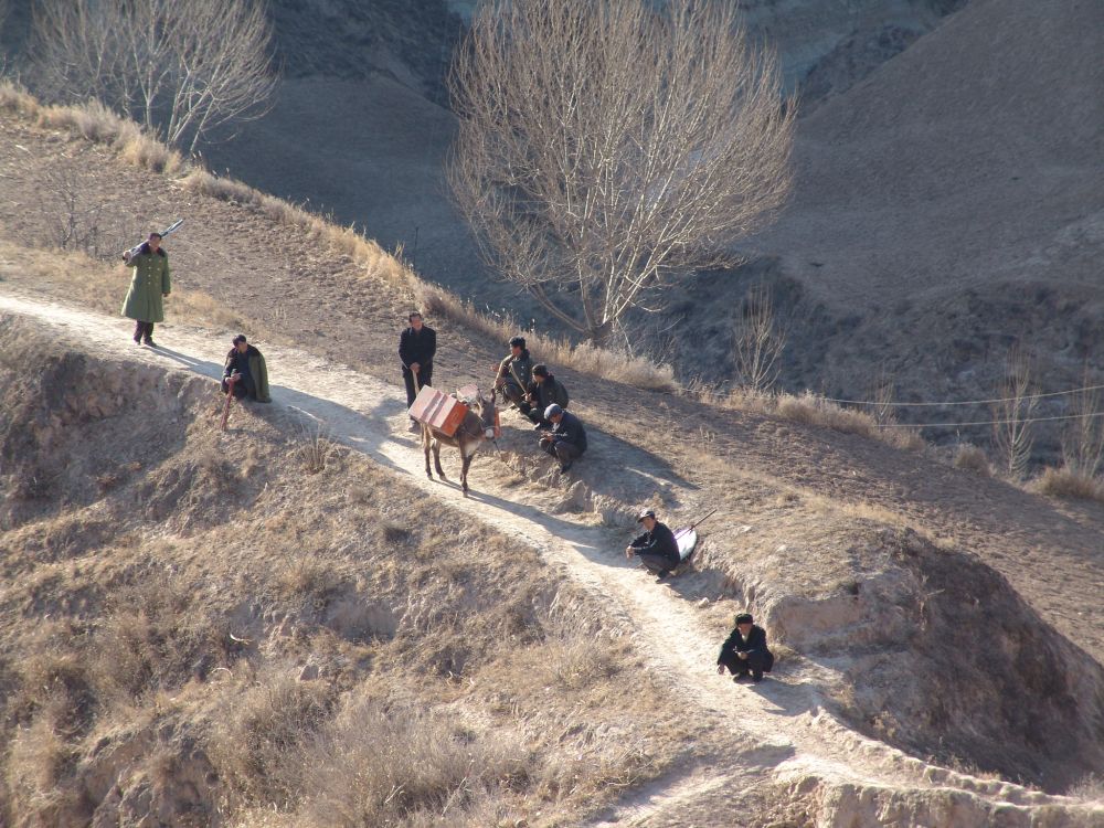 環(huán)縣道情皮影戲班曾經(jīng)趕著驢四處唱戲的場景。(環(huán)縣融媒體中心供圖)