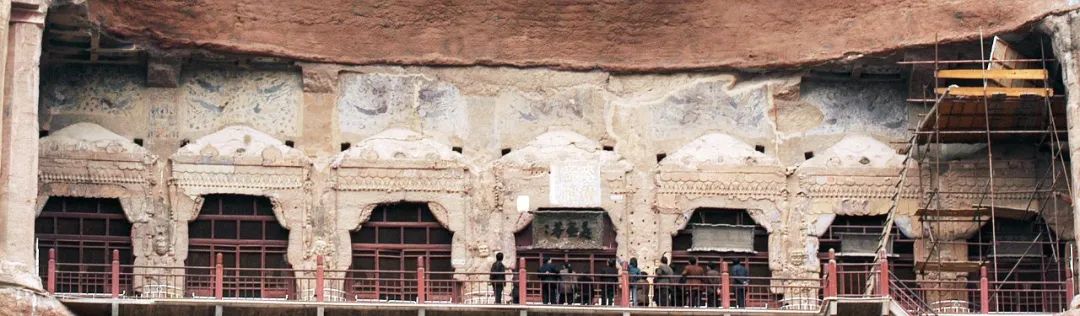 代表性窟龕主要有第4、9、12、15、22、26、27、141等窟,主要集中在東崖。仿殿堂式窟在這一時期達到頂峰,如東崖上部的第4窟,俗稱“上七佛閣”或“散花樓”,系大型廡殿頂,前廊后室、七間八柱式結構,面闊30.48米、進深8.00米、通高16.00米,平棋、斗栱、額枋、瓦壟、正脊、鴟吻等建筑構件一應俱全。后室由七個裝飾華麗的帳形大龕組成,富麗堂皇。