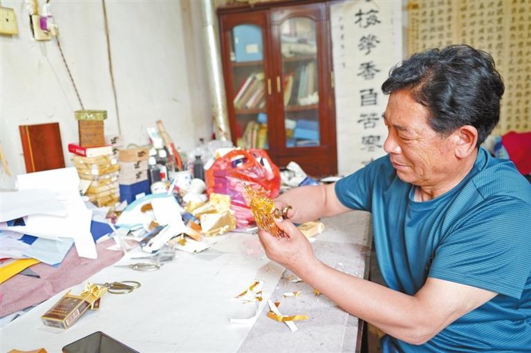 原標(biāo)題:巧用廢棄錫箔紙 平?jīng)雒耖g藝人剪出“千梅圖”