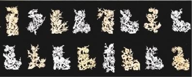 所剪的梅花枝干千姿百態(tài),變化多端,有粗有細(xì)、有長有短。梅花花朵有大有小,有的含苞未放,有的正在盛開。所剪的喜鵲也是形態(tài)多樣,有的在枝頭歡唱,有的在花間飛翔,有的竊竊私語,有的比翼雙棲,給人以喜氣又可愛的視覺效果。共分為8幀圖卷,分別為《寒梅吐艷》《喜梅報(bào)春》《一門喜事》《雙喜盈門》《喜事連連》《梅開五?!贰兜歉咄h(yuǎn)》《喜上眉梢》。