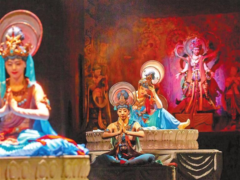 敦煌,這座取之不盡用之不竭的藝術(shù)富礦,這一“頂流”的文化IP,已成為我省旅游演藝創(chuàng)作的發(fā)端。廣大文藝工作者深入挖掘敦煌文化,不斷豐富敦煌旅游演藝市場(chǎng),以藝術(shù)的形式展示“一帶一路”開(kāi)放、包容、合作、共贏(yíng)的精神,在創(chuàng)新傳承中展現(xiàn)文化自信。