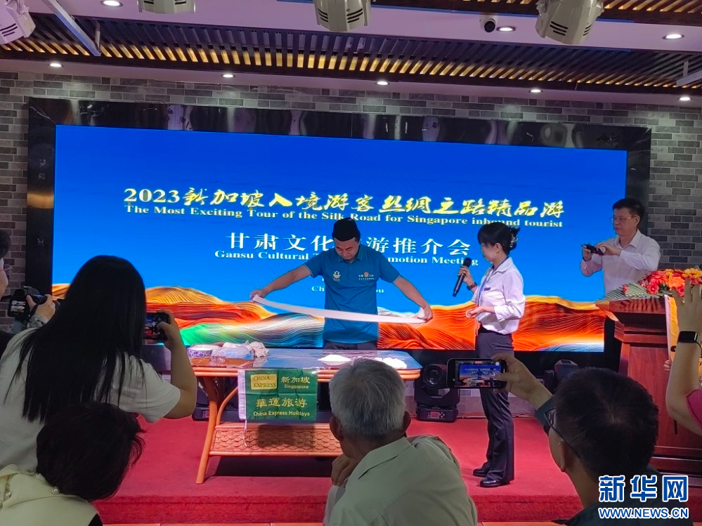 推介會(huì)上,甘肅文化和旅游推介大使向新加坡游客詳細(xì)介紹了甘肅多元且極富特色的文化旅游資源;蘭州拉面師傅為大家現(xiàn)場表演了非遺美食牛肉面的拉面絕技;新加坡南方藝術(shù)研究會(huì)合唱團(tuán)還進(jìn)行了合唱表演。