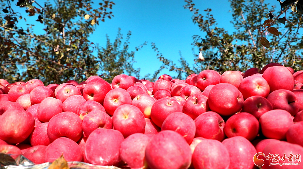 靜寧蘋果熟了!”當(dāng)下,靜寧縣的蘋果陸續(xù)成熟進(jìn)入采摘期,放眼望去,滿山的蘋果樹(shù)郁郁蔥蔥、枝繁葉茂,摘下果袋,一顆顆“金蛋蛋”俏耀枝頭,香氣四溢。此時(shí)隨處可見(jiàn)忙碌在果園地頭的果農(nóng),取袋、采收……處處一派繁忙景象。