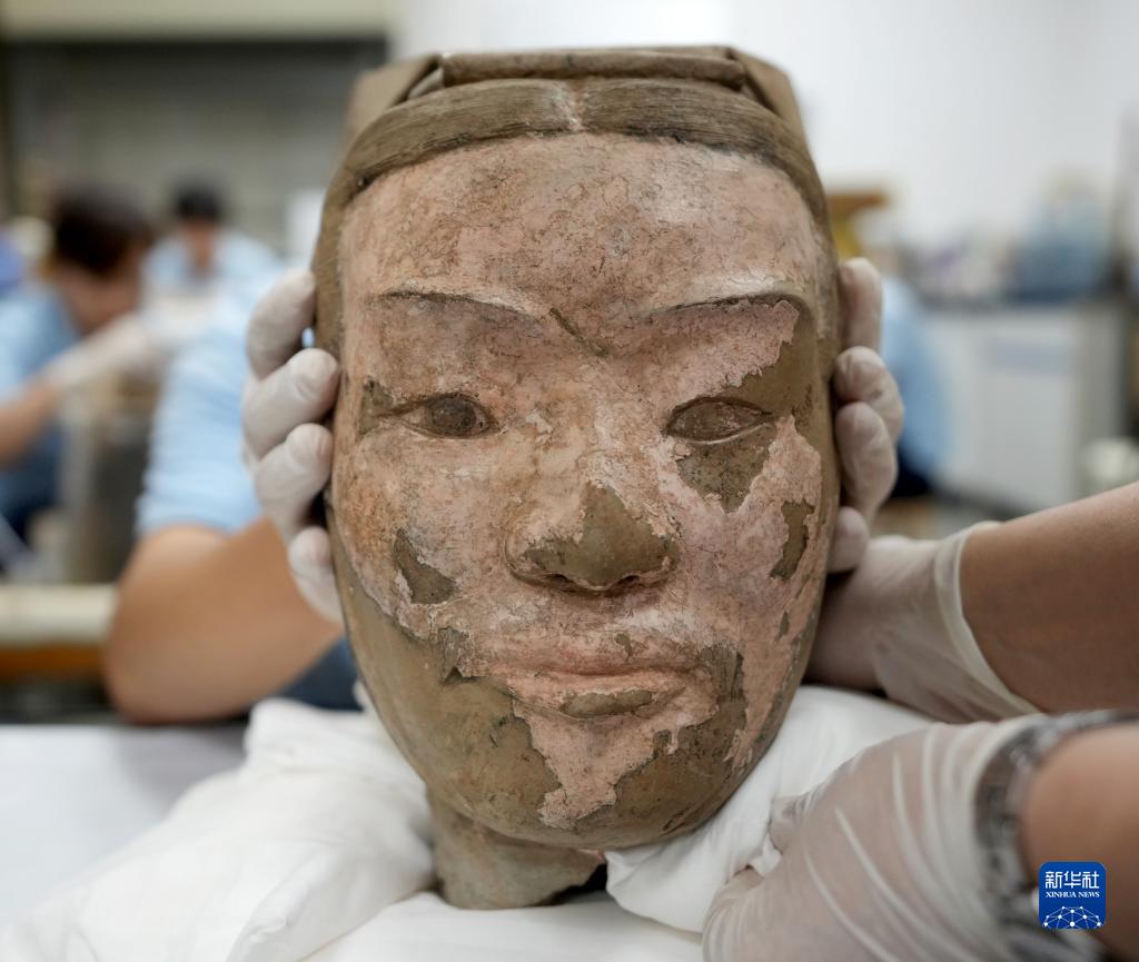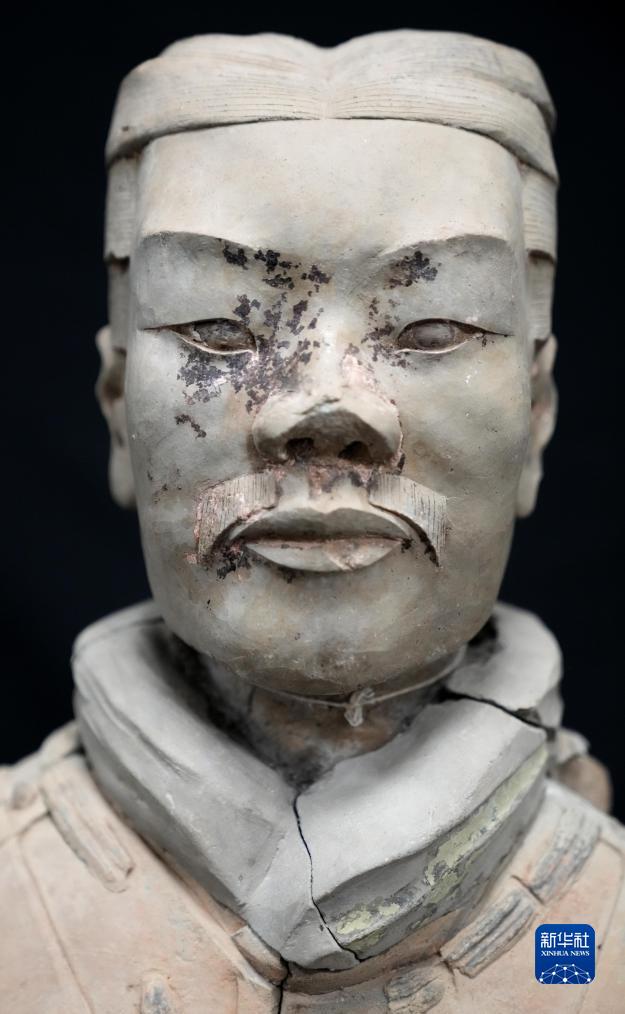 這是秦俑臉部彩繪還原修復后的樣貌(8月23日攝)。