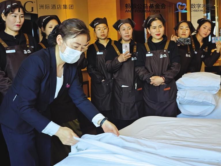 中國甘肅網(wǎng)12月1日訊 據(jù)蘭州晚報報道 11月28日至30日,由螞蟻公益基金會、洲際酒店集團(tuán)聯(lián)合舉辦的首期“數(shù)字木蘭”民宿管家研學(xué)營(以下稱“木蘭管家研學(xué)營”)在蘭州開班。來自臨夏、隴南、甘南、平?jīng)觥堃吹鹊?5名鄉(xiāng)村民宿管家從服務(wù)一線來到蘭州皇冠假日酒店,參加為期3天的跟崗學(xué)習(xí),系統(tǒng)提升對客服務(wù)、酒店管理等綜合技能。