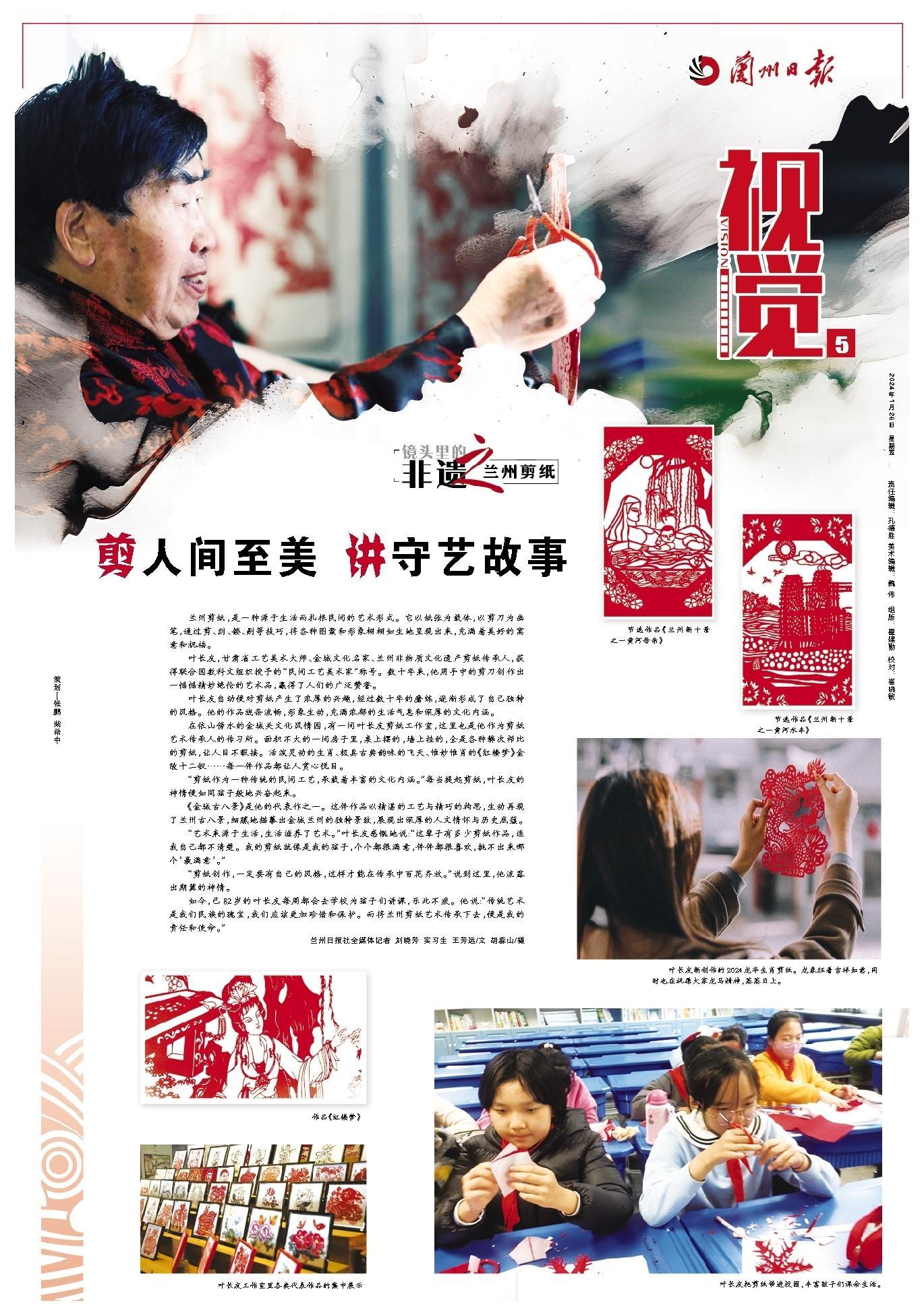 如今,已82歲的葉長(zhǎng)友每周都會(huì)去學(xué)校為孩子們講課,樂此不疲。他說(shuō):“傳統(tǒng)藝術(shù)是我們民族的瑰寶,我們應(yīng)該更加珍惜和保護(hù)。而將蘭州剪紙藝術(shù)傳承下去,便是我的責(zé)任和使命。”