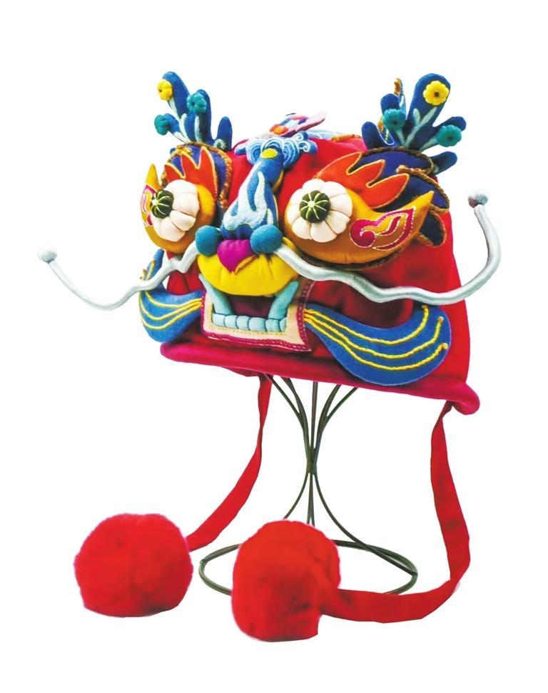 劉蘭芳說(shuō):“這次制作的龍騰虎躍帽子,設(shè)計(jì)靈感源于我們慶陽(yáng)香包的傳統(tǒng)文化和紋樣。用代表長(zhǎng)壽的金瓜造型做眼珠、立體布雕構(gòu)成五層眼體,眼角上揚(yáng),繡著一朵盛開(kāi)的火焰紋,讓龍眼顯得炯炯有神;鼻子造型是慶陽(yáng)香包獨(dú)有的‘絀絀’,它的上尖和下尖兩個(gè)顏色代表著天地合一,上尖繡的火焰似力量,火焰中的龍珠代表著珍貴,下邊造型好似元寶,整體又似如意,寓意無(wú)價(jià)之寶;額頭的立體錦鯉代表著福祿,龍門(mén)象征著事業(yè)飛黃騰達(dá),龍門(mén)繡著的水波紋代表著好運(yùn),眉毛如火的造型代表著熱情;從龍角的生命之樹(shù)閃耀著光芒,結(jié)出了金瓜,這組結(jié)合代表著健康;嘴巴呈鋸齒齊牙狀,龍的胡須好似兩片葉子,盤(pán)金線(xiàn)走出的紋樣如同葉脈煥發(fā)著生機(jī),龍帽后面的龍鱗和龍尾,都凸顯了龍的威猛與力量,同時(shí)也展示了我們慶陽(yáng)香包傳承人的精湛技藝和無(wú)限創(chuàng)意。這款龍頭帽,突出龍頭的獨(dú)特造型,盡顯龍的霸氣與神韻。”