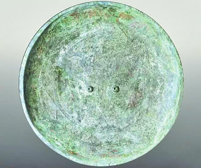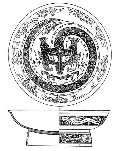 河南婦好墓出土婦好盤,口徑約36厘米,重5.9千克。腹外壁飾連續(xù)帶狀夔紋,足外壁飾連續(xù)帶狀饕餮紋,盤內(nèi)壁以蟠龍為主紋,龍頭位于盤心,頭下配一夔紋,頭兩側(cè)分別鑄“婦好”銘文,蟠龍外圍飾一圈獸形紋,裝飾非常華麗。
