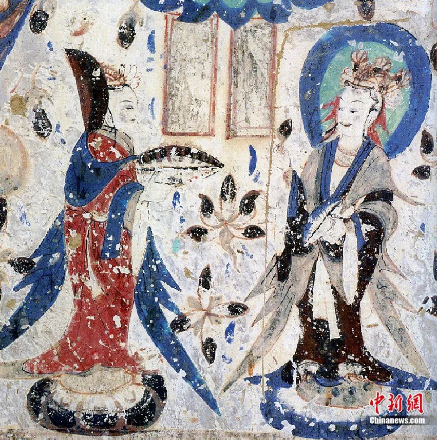 莫高窟第285窟西域式“龜茲裝”人物造型。敦煌研究院供圖